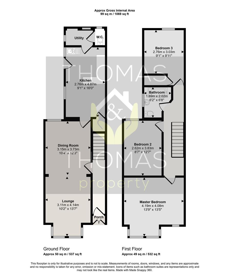 Comprising of: Entrance hall leading to the two reception rooms, kitchen with under stairs storage and finally downstairs WC. Upstairs there are three well proportioned bedrooms and a family bathroom.