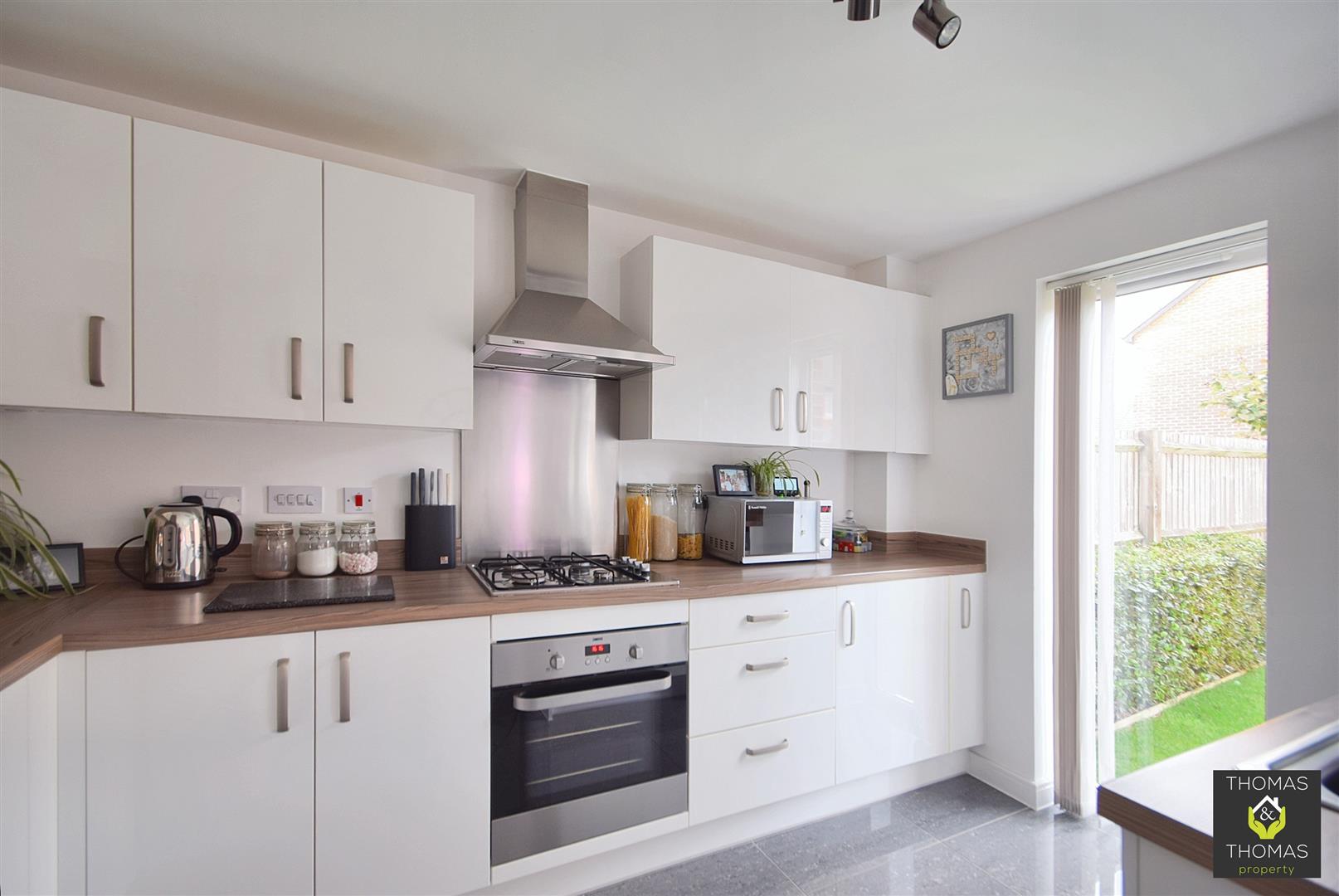 Upon entering, you are greeted by a spacious living room, thoughtfully designed to accommodate a large family corner sofa, perfect for those cherished movie nights. The heart of the home is undoubtedly the open-plan modern fitted kitchen diner, which spreads across the back of the home & features a stylish breakfast bar and patio doors that seamlessly connect the indoor space to the low-maintenance walled garden. This outdoor area is perfect for enjoying a morning coffee or hosting summer barbecues.