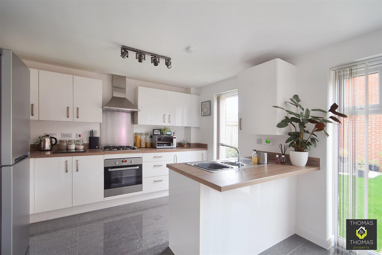 Executive end-terraced 4 bed townhouse serviced by 3 bath/shower rooms, boasting an open-plan fitted kitchen diner, with stylish breakfast bar and patio doors that seamlessly connect the indoor space to the low-maintenance walled garden, garage and driveway.