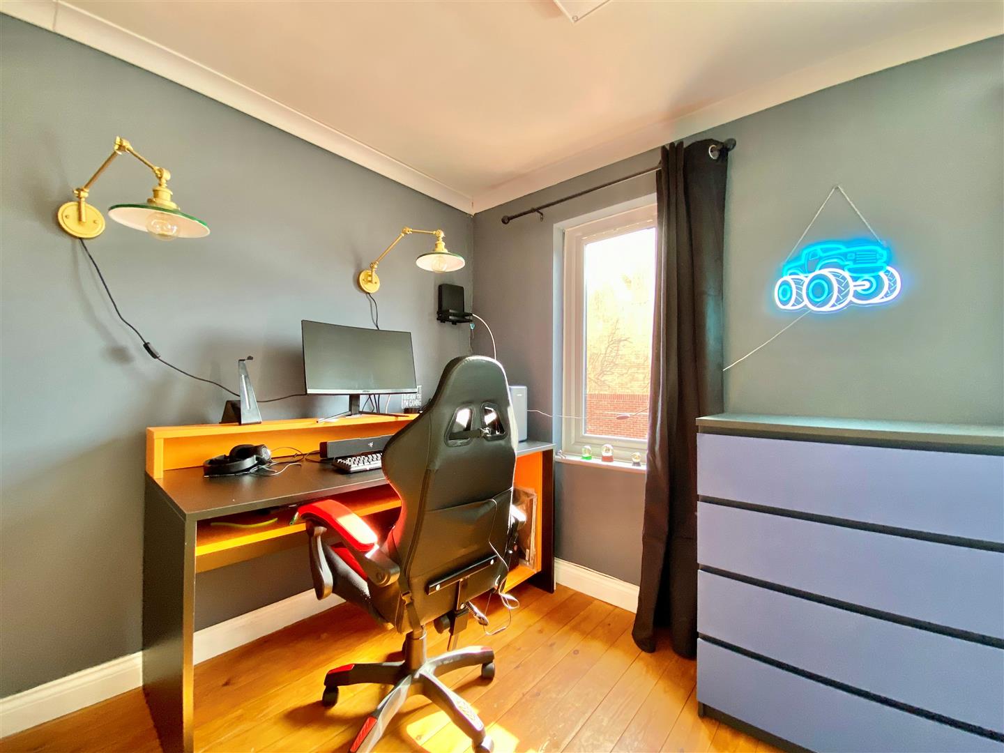 Outside, the property boasts a block-paved driveway leading to a garage, which has been creatively split into a gym, offering a private space for fitness enthusiasts & utility. The enclosed rear garden is a lovely feature, providing a safe area for children to play or for adults to unwind. Additionally, the rear access onto Longford Lane allows for easy access to local amenities, enhancing the convenience of this location.