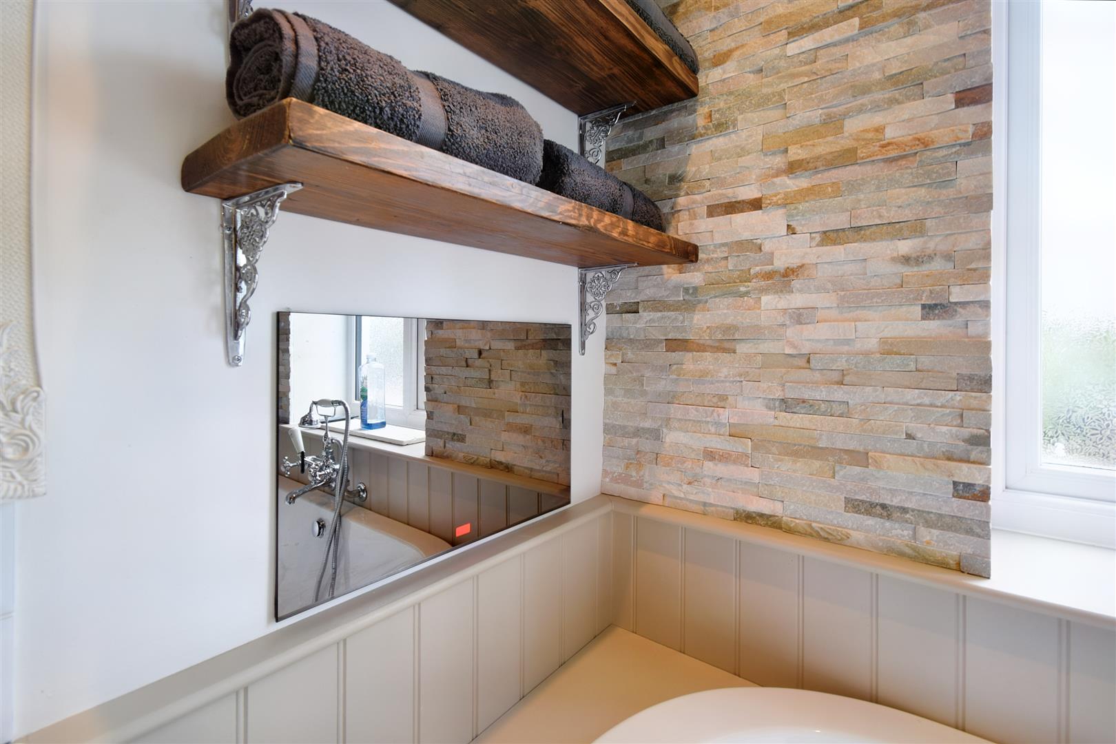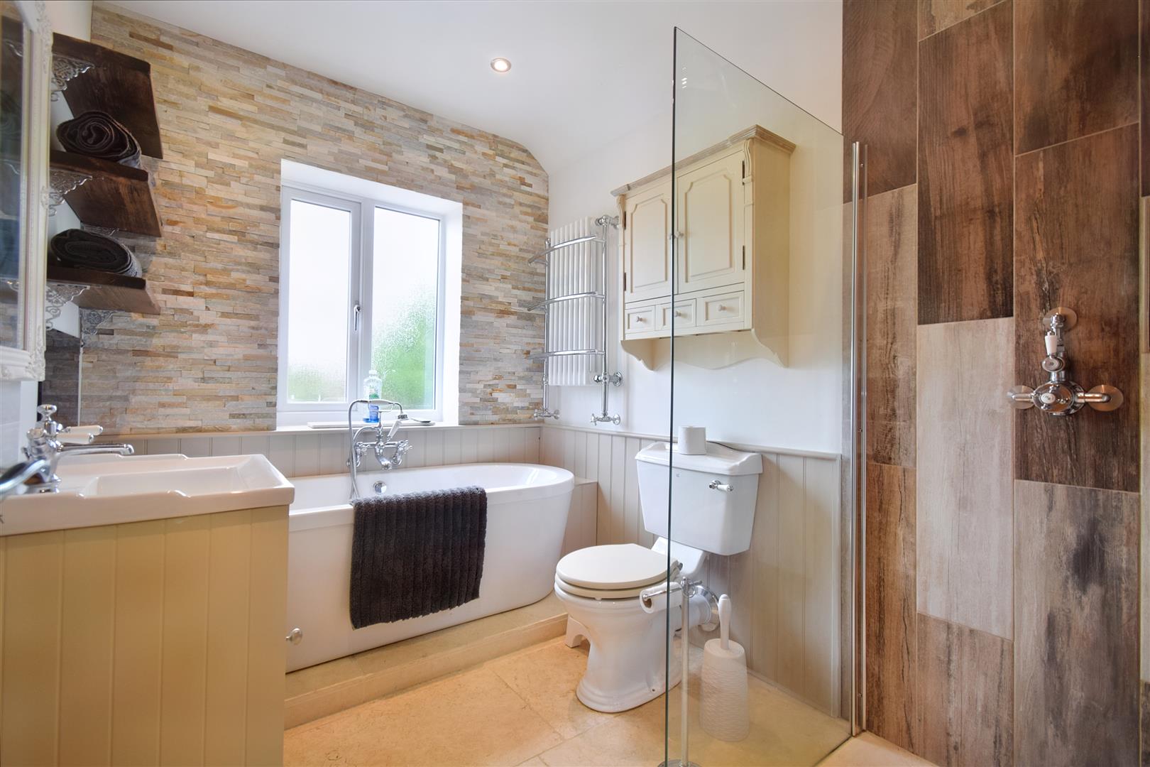 Upstairs are three spacious bedrooms and a family bathroom. The bathroom has been fitted to a very high specification where it comprises a walk in shower, bespoke lighting, free standing bath and an inset TV.