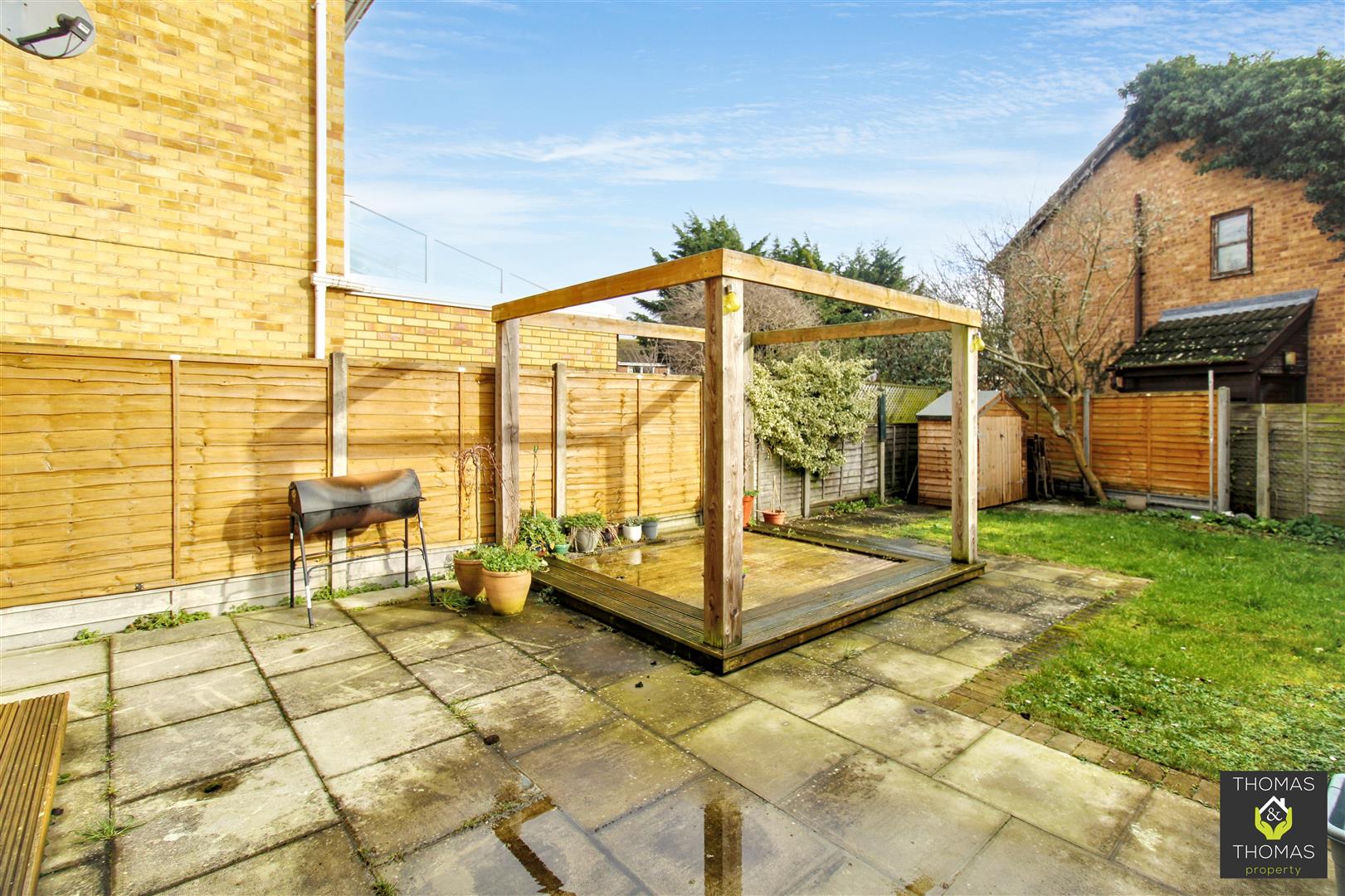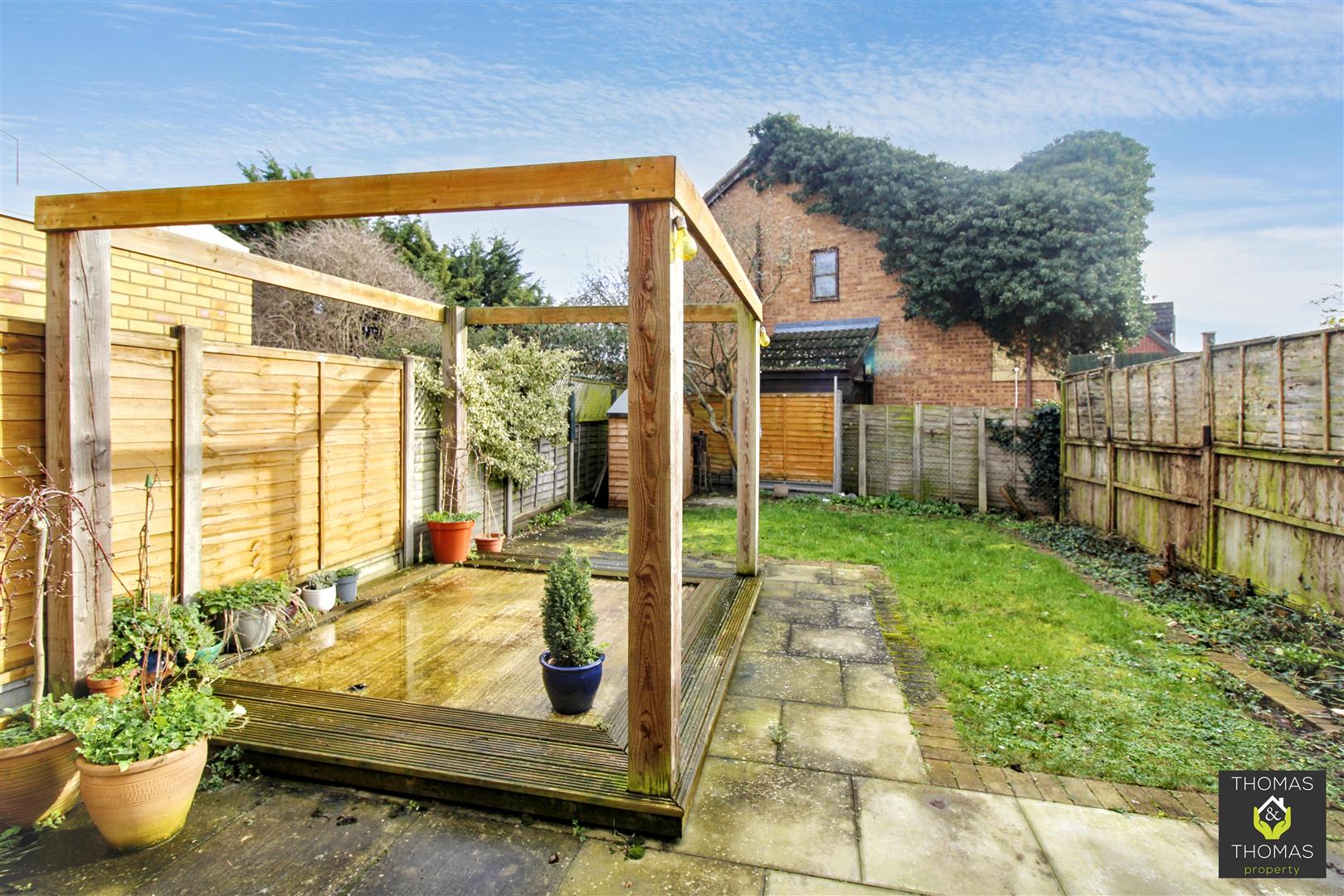 Outside is a private enclosed garden with patio, decking and grass area with side gate access.