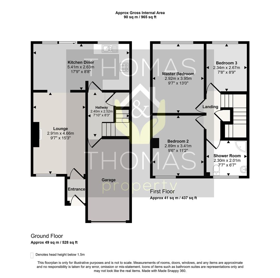 There is an internal hallway with storage cupboard and access to the garage. Upstairs there are three bedrooms, two of which are good sized doubles. There is a very good sized family bathroom with standalone shower.