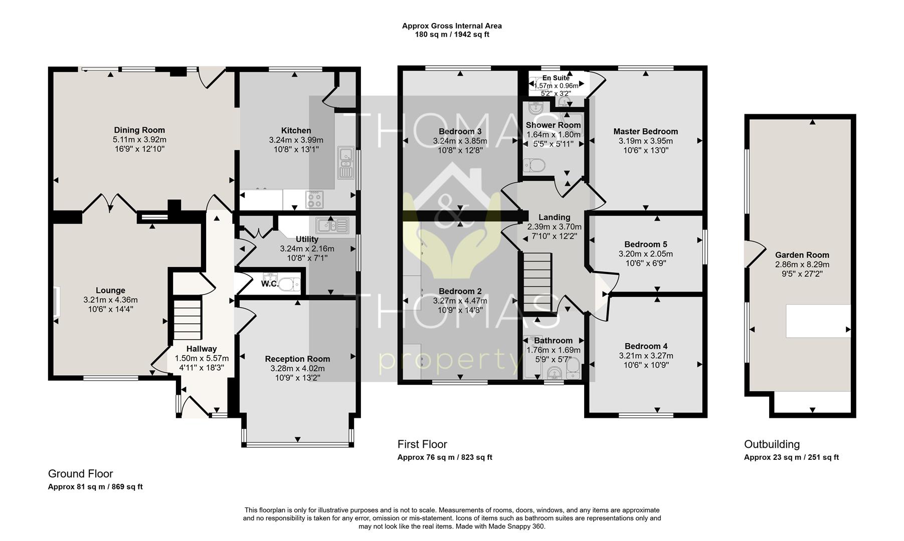 Additionally the property benefits a garage and ample off road parking for upto 6 vehicles. Pedestrian gated access into secluded rear garden. Outbuilding currently used as a games room/hobbies room with a separate utility room but could be used as a gym/home office/cinema room. The outbuilding further benefits from mains water, and electricity.