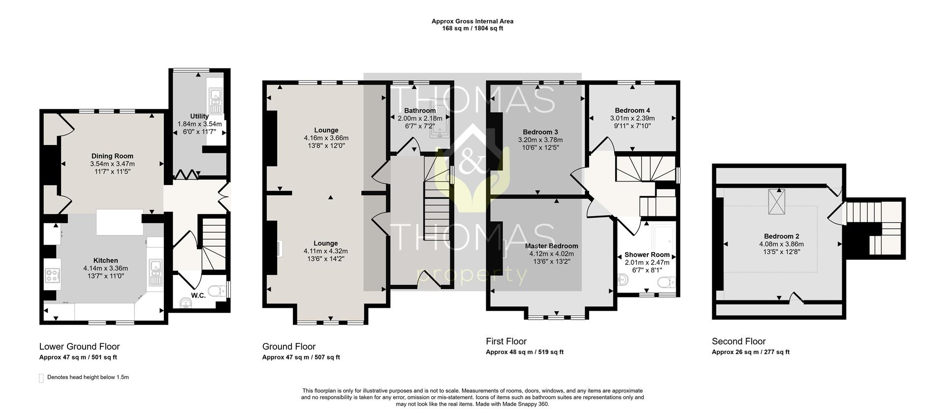 On the first floor there are three double bedrooms and family bathroom with walk in shower. On the top floor is an additional fourth double bedroom.