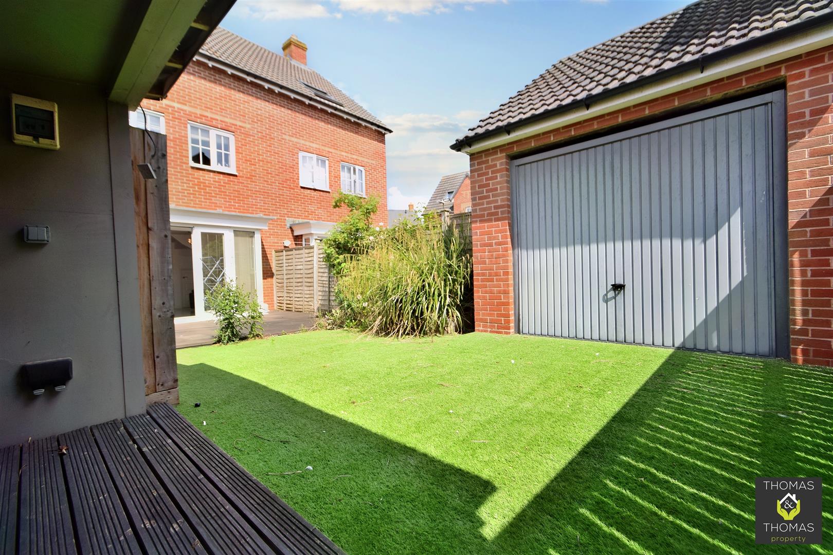 Thomas & Thomas property are pleased to be offering this four bedroom house in Longford, Gloucester. The property briefly comprises of, entrance hallway with utility room and W/C, open plan kitchen / diner / living room with french doors opening on to the enclosed garden. Outside there is a decking area, sheltered social area with seating / power / lights and access to the garage. On the first floor is the main bedroom with en suite and the second double bedroom. On the third floor there are two further double bedrooms and shared modern fitted bathroom with shower over bath.